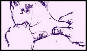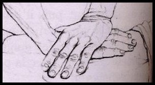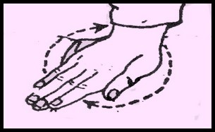 On utilise la pulpe et la face interne des doigts. On appuie progressivement .